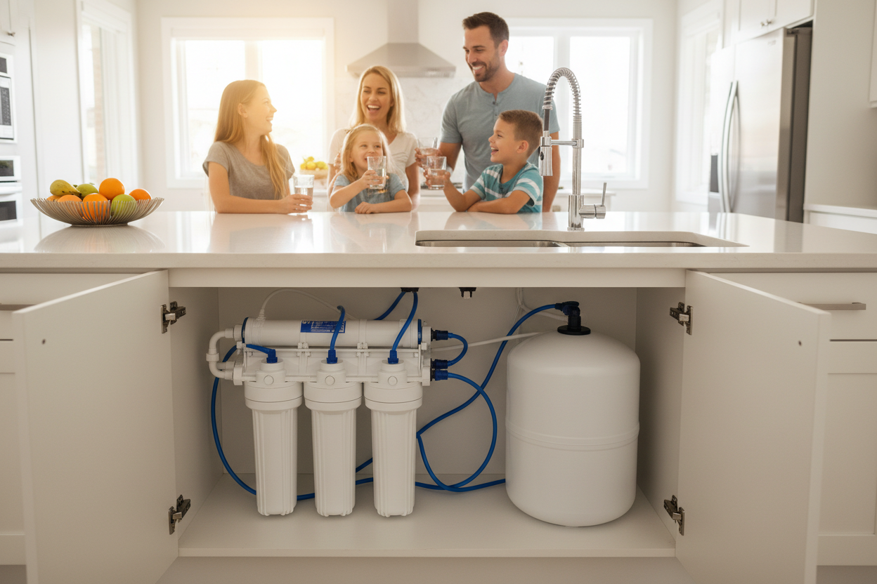 Ultra-pure reverse osmosis filtration that removes up to 99% of dissolved solids, heavy metals, fluoride, lead, arsenic, and more. Available in under-sink, countertop, and tankless models — perfect for families who want the highest level of drinking water purity.