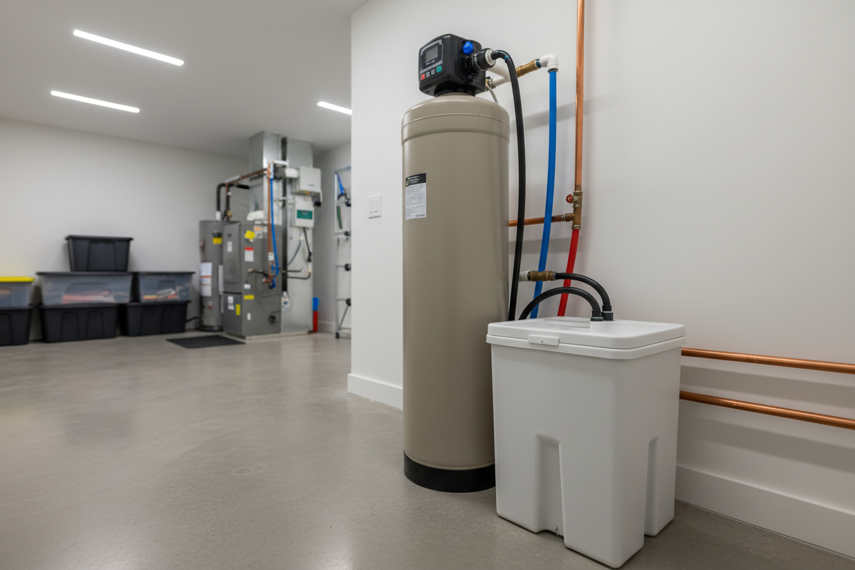 Water softeners solve hard water problems by removing calcium and magnesium minerals that cause scale buildup on fixtures, appliances, pipes, and water heaters. This results in longer appliance life, reduced energy bills, softer skin and hair, less soap scum, brighter laundry, and easier cleaning throughout your home.